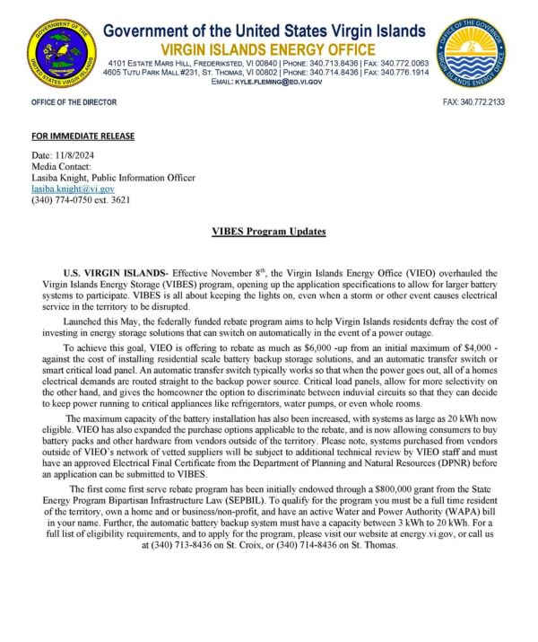 U.S. Virgin Islands Expands Eligibility for Battery Program